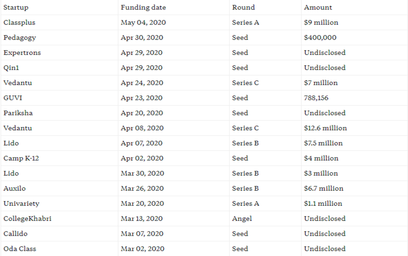 코로나 발발 기간 중 투자를 유치한 인도 14개 에듀테크 스타트업