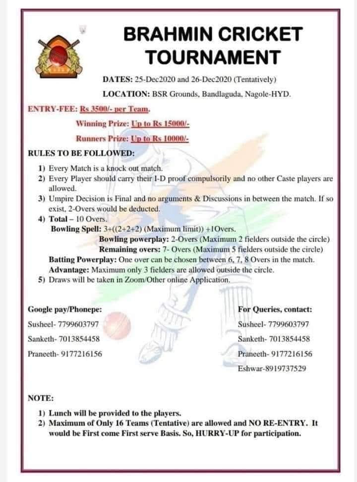 아래 홍보문을 보시면 'Brahmin 크리켓 토너먼트'