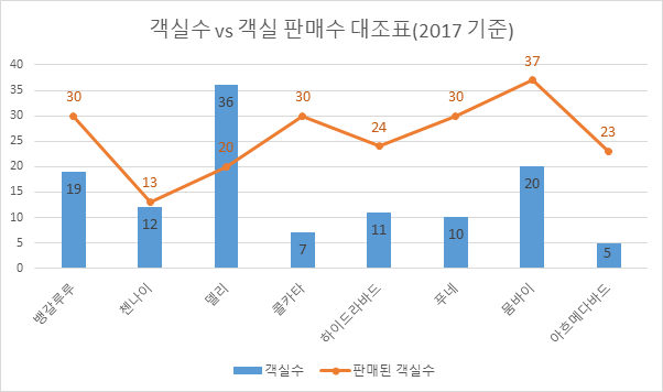 - 인도 내의 숙박산업에서 델리와 뭄바이가 가장 큰 규모를 차지하고 있으며 그 다음으로는 뱅갈로, 하이드라바드와 첸나이가 차지.