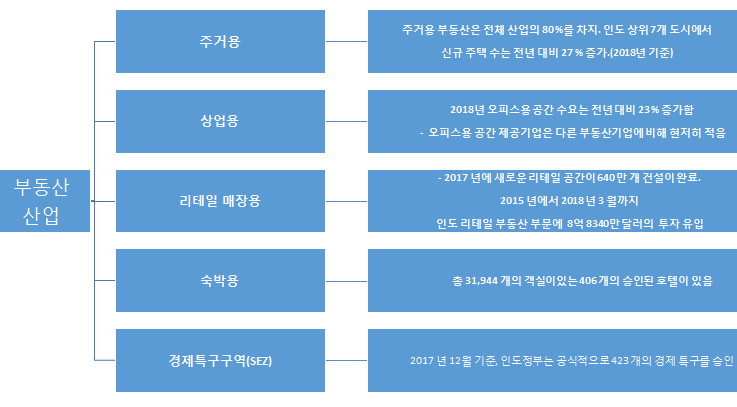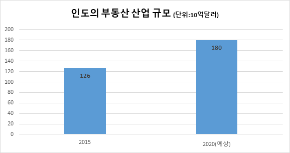 현재 외국인 투자 규제의 완화와 인도 산업발전에 따라 급격하게 늘어나는 부동산 수요로 인해 인도 부동산시장은 높은 성장률을 보이고 있으며 이는 2020년까지 1800억달러로 커질 것으로 예상되고 있다.