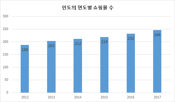 - 인도 국민의 소비력이 전체적으로 급증하는 가운데 리테일 공간 개발은 연간 25-30 % 성장률을 보임