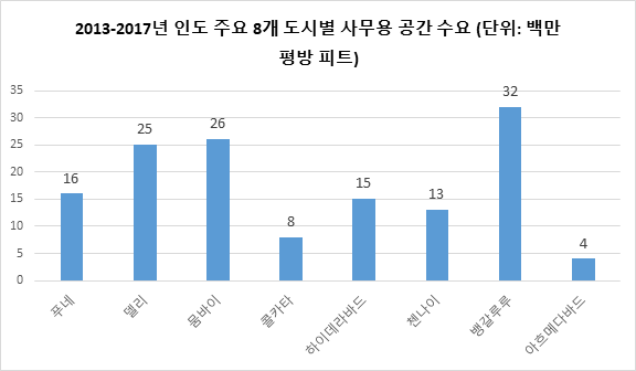 2017년 인도의 총 사무실 공간 수요의 60%는 뭄바이, 델리 및 뱅갈루루 지역이며