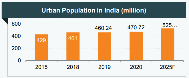 급속한 도시화로 도시에 거주하는 인도인의 수는
