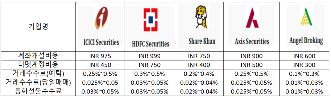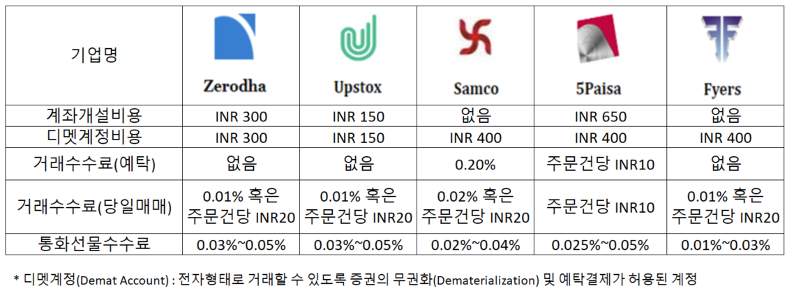 자료: 각 증권중개회사 홈페이지 및 KOTRA 첸나이 무역관 자료 종합