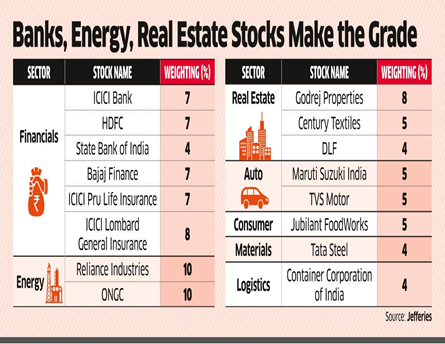 이 포트폴리오는 내수 중심이지만 높은 유가로 인한 인도 금융과 금리에 민감한 부문의 위험을 헤지하기 위해 에너지 관련 주식도 포함