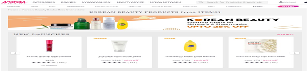 인도 주요 화장품 판매점인 Nykaa는 온라인 플랫폼 내 한국 화장품 전용관을 따로 개설해 이니스프리, 에뛰드 하우스, 이츠스킨, 토니모리 등 약 30개의 한국 브랜드 제품을 홍보하고 있으며 이러한 K-Beauty 제품은 전체 스킨케어 매출의 약 15%를 차지할 정도로 높은 성장세를 보이고 있다. 또한 Nykaa의 공식 유튜브 계정은 9단계의 한국인 스킨케어 따라하기 콘텐츠를 게시해 2020년 8월 기준 약 75만 회 정도 조회되고 있다.