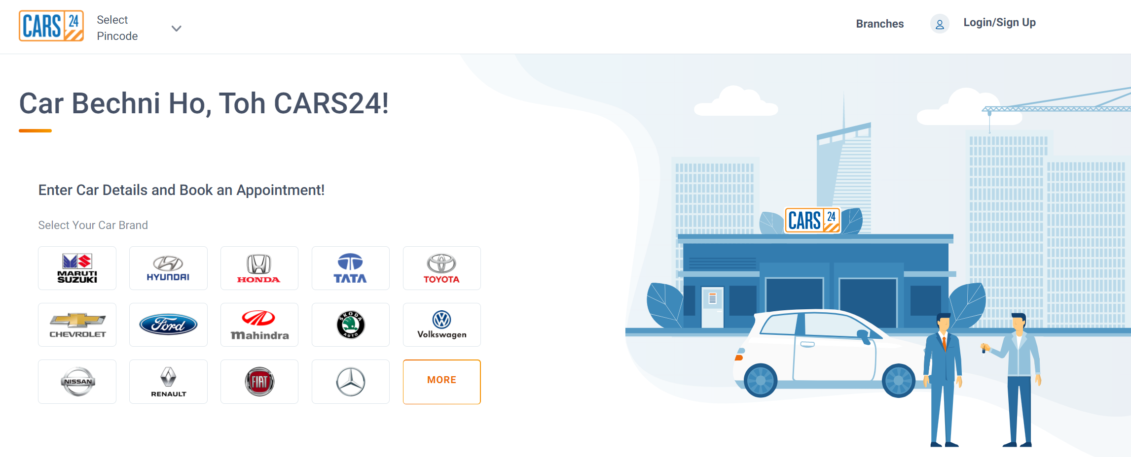 소비자는 Cars24 지점 중 하나와 약속을 예약하고